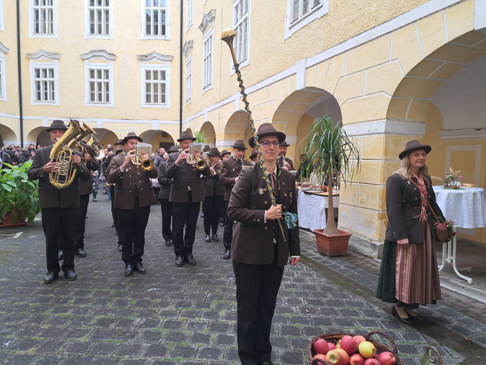 Auch in diesem Jahr durften wir als Musikkapelle das Erntedankfest musikalisch mitgestalten. Vor dem Kloster wurde die Erntekrone gesegnet, gemeinsam marschierten wir in die Basilika, wo der Festgottesdienst von uns feierlich umrahmt wurde.